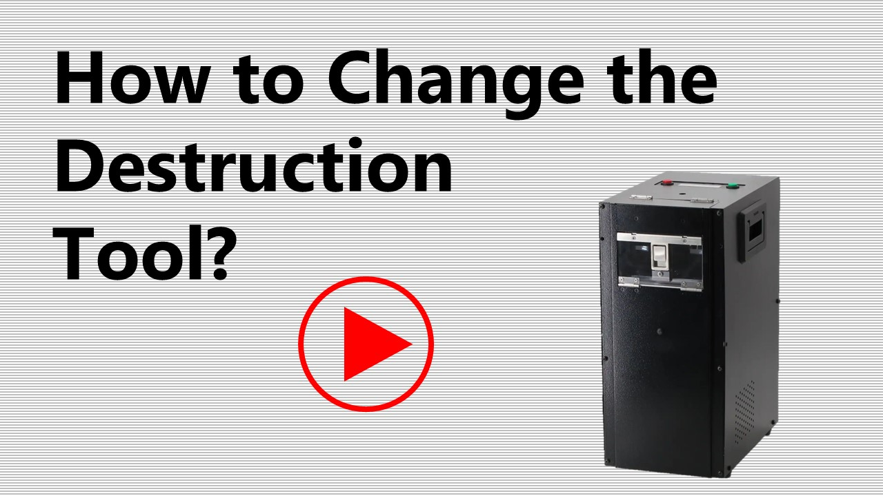 Interchangeable destructions tools, secured inside a locked enclosure.