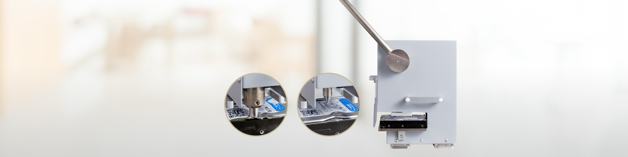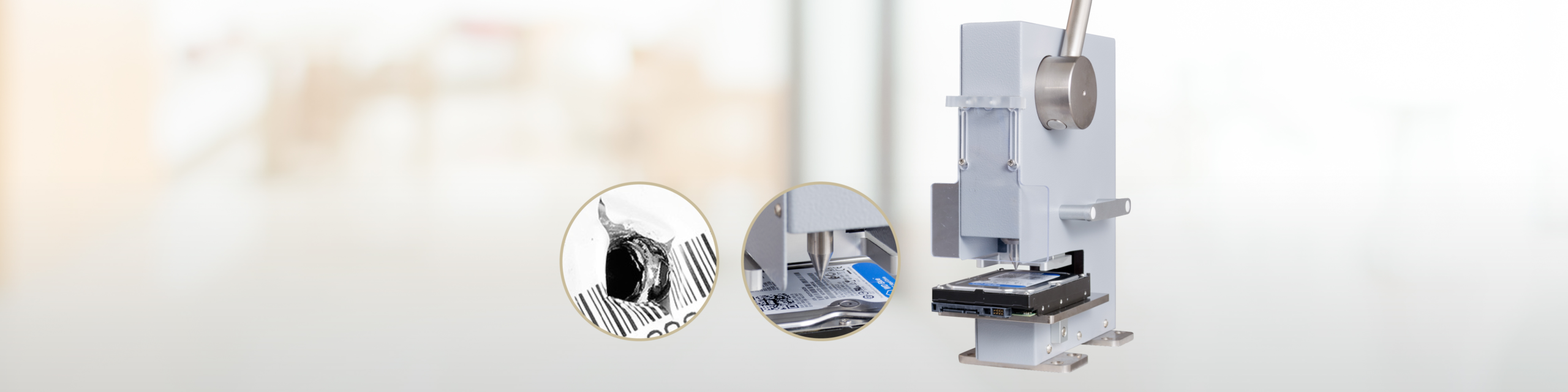 The HDT02-UST Hard Drive Puncher offers a secure and efficient solution for the destruction of magnetic and SSD hard drives. Such physical destruction of outdated or unwanted hard drives is a critical step in data security.